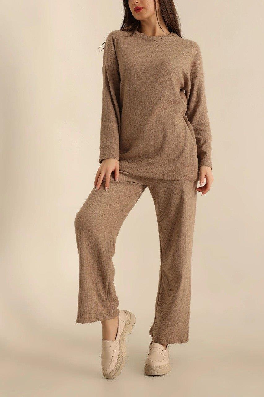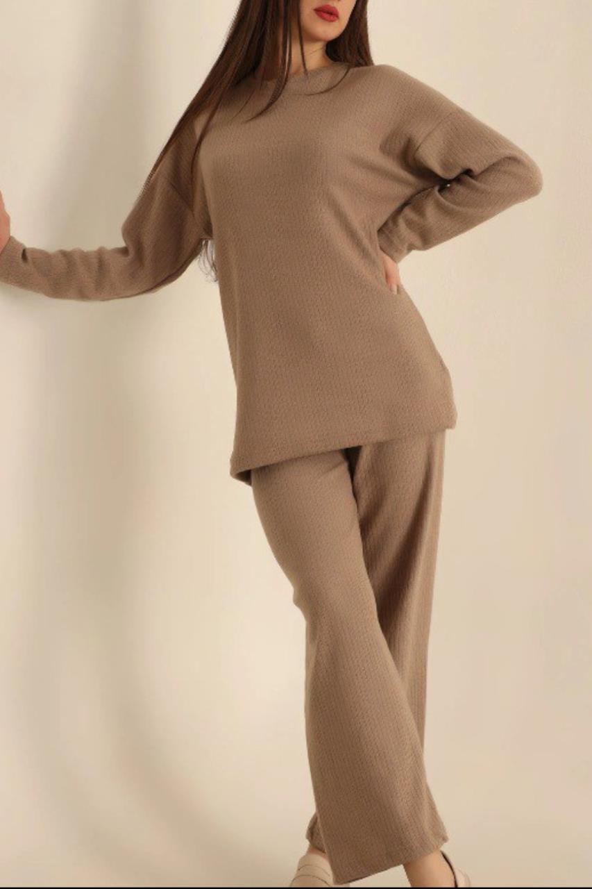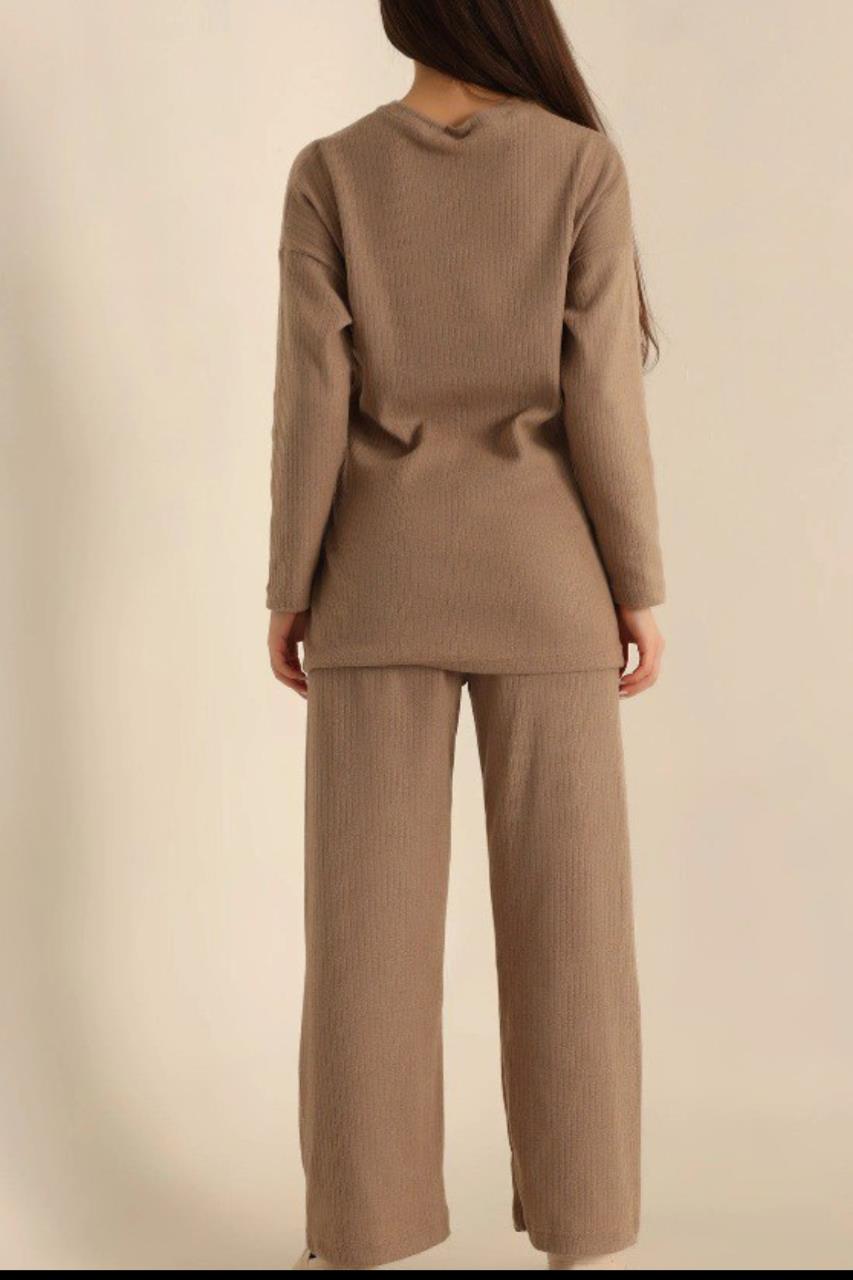 Dantel By Mls Kahverengi İnterlok Şardon Dokulu Ev Giyim İkili Takım